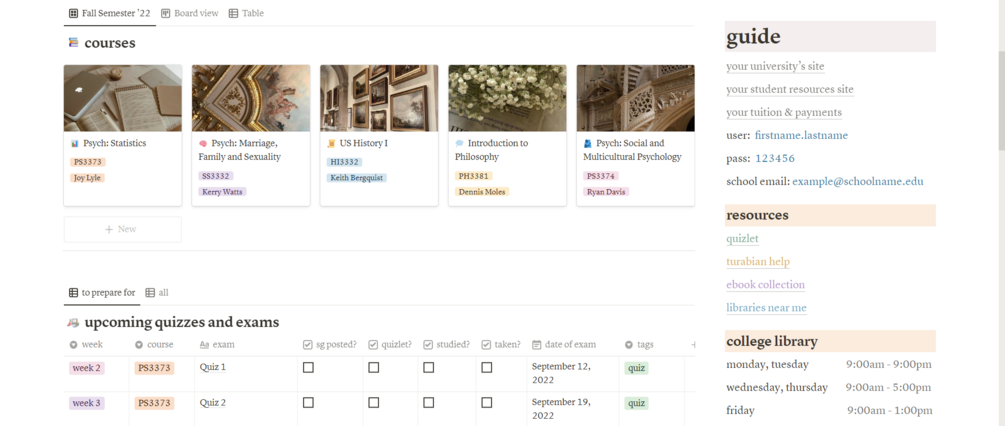College Notion — Light Academia